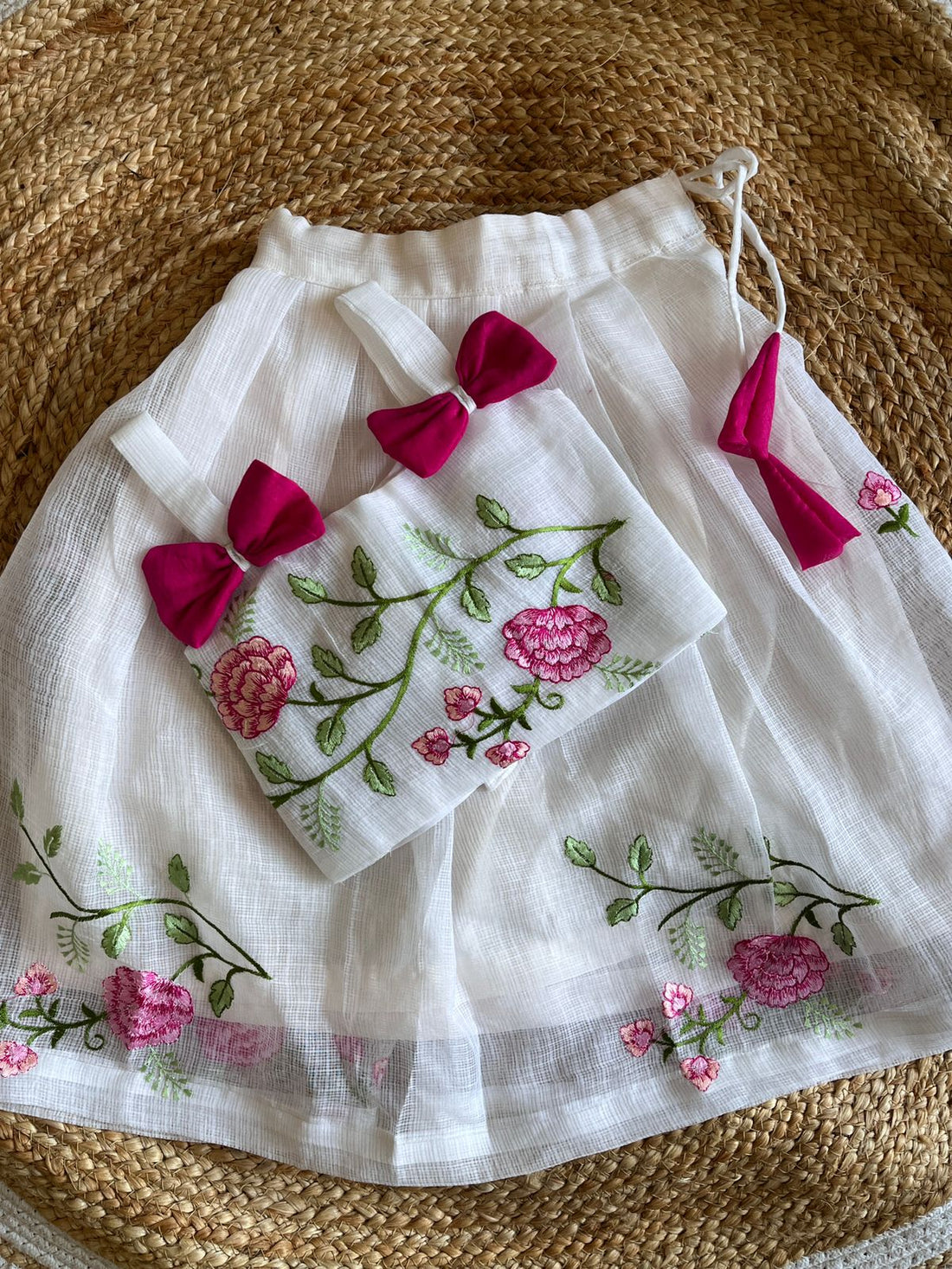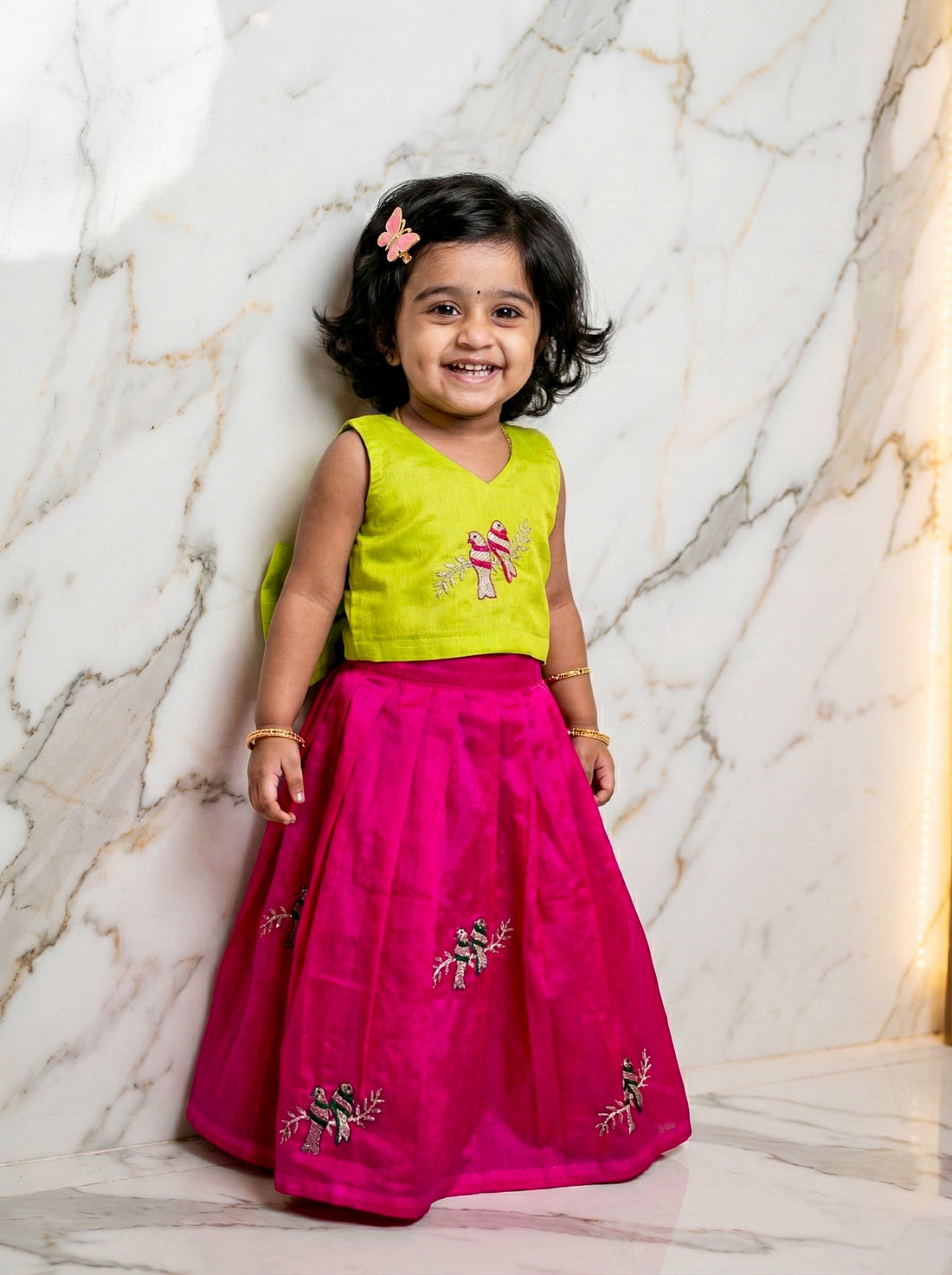 This adorable Parrot 🦜Chanderi crop top lehenga is perfect for your little one. With its...