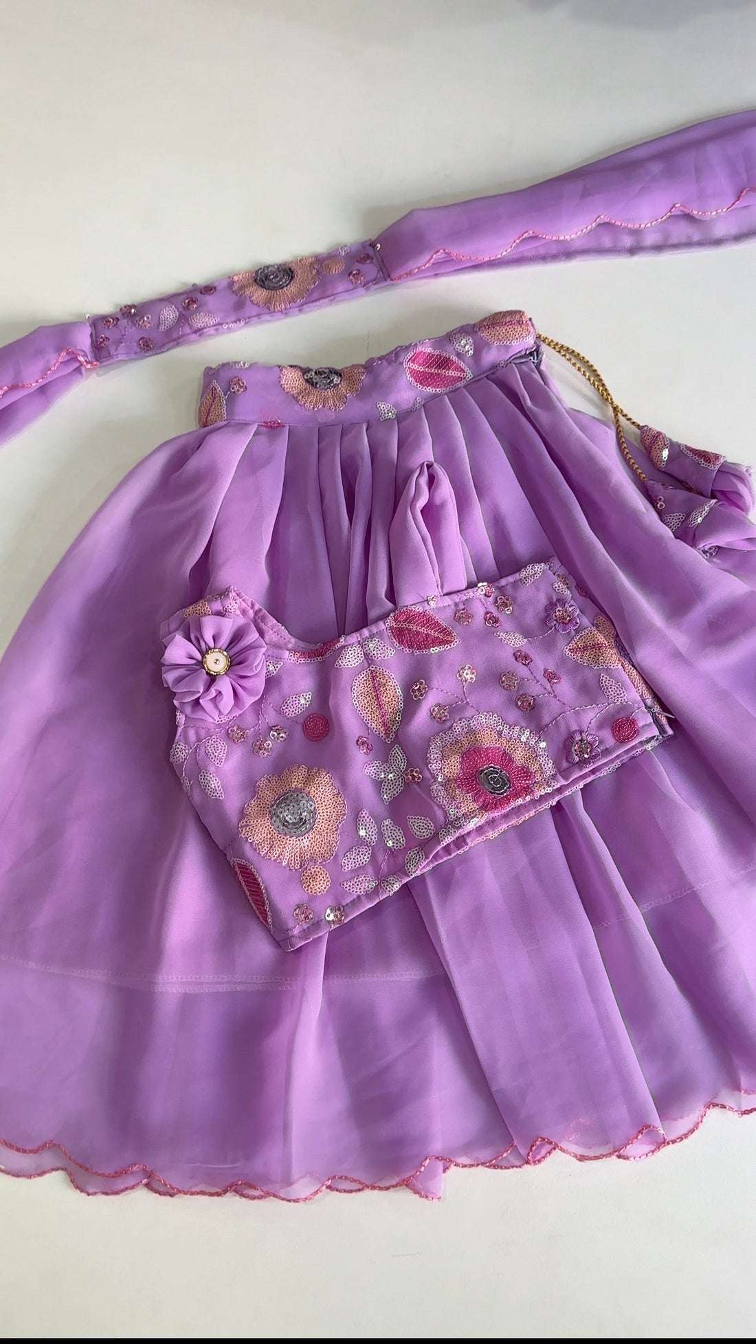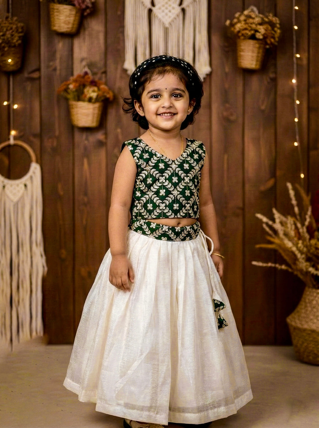 The Sarasija is a stylish crop top lehenga designed for children, featuring popular traditional color...
