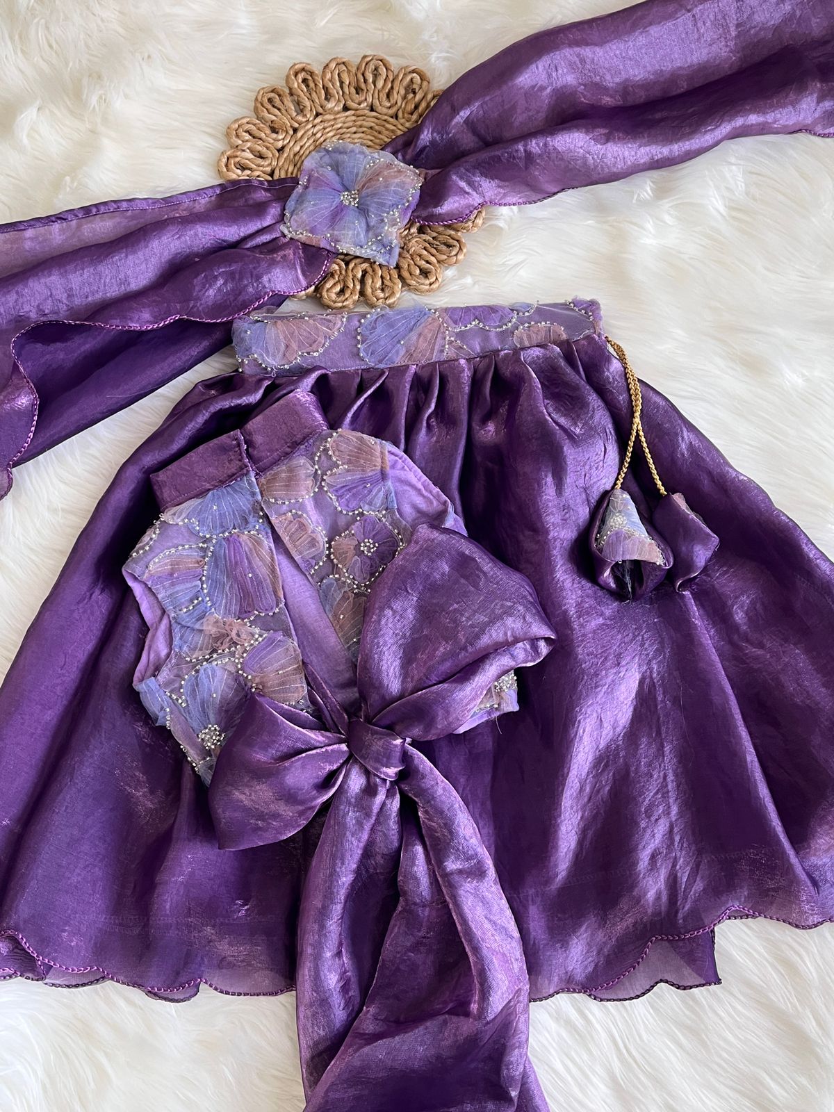 The Senorita is a designer kids' lehenga featuring a high halter neck, crafted to combine style and comfort. With its chic design, this outfit is ideal for a variety of events, ensuring your child stands out. The garment's quality construction supports long-lasting wear, enhancing the overall value.