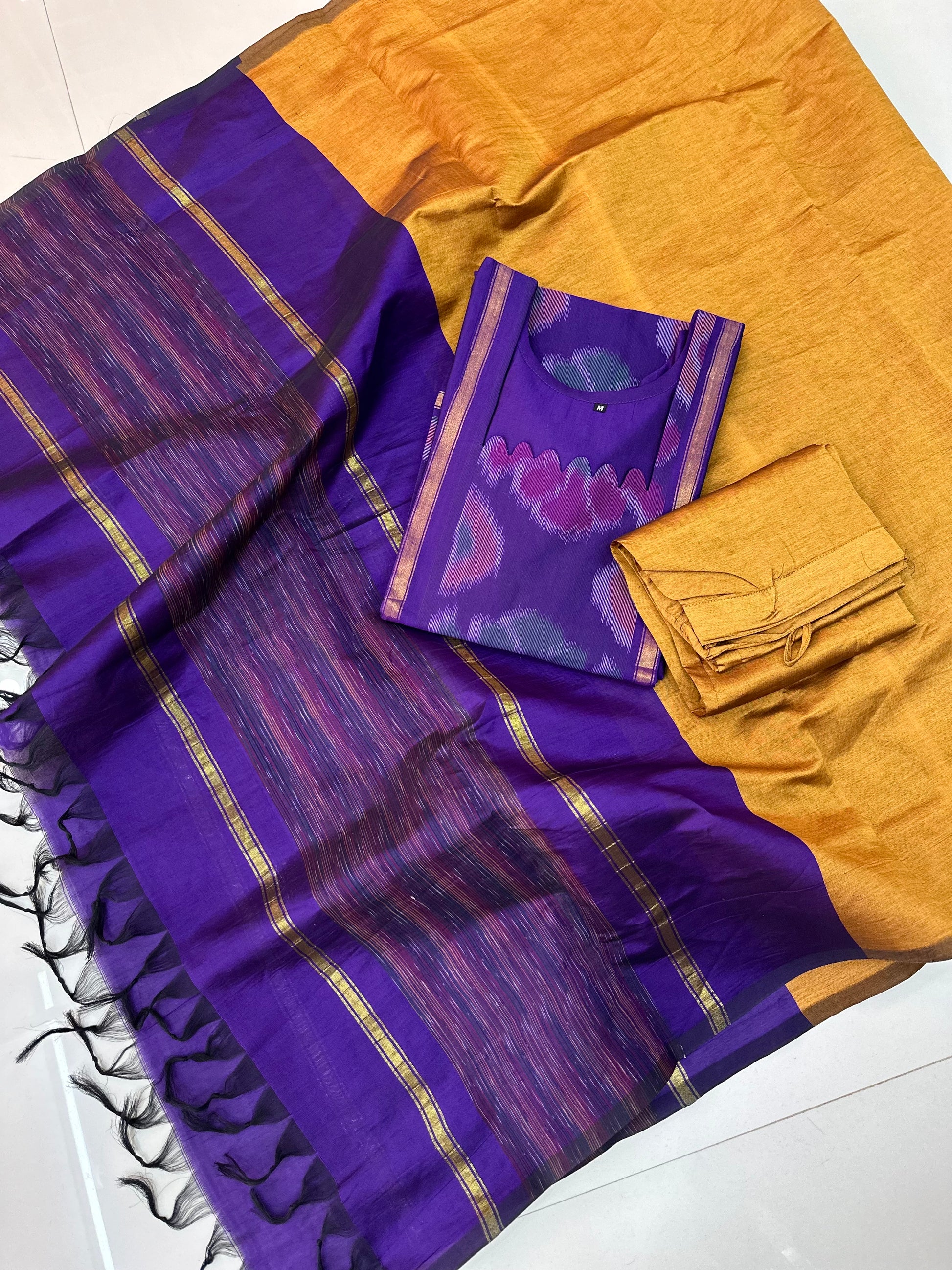 The Sico Pochampally Kurti sets are designed to offer a traditional and festive aesthetic, showcasing the intricate Ikkat craftsmanship. Made from a carefully blended fabric, these sets ensure comfort and durability, making them suitable for various occasions. Ideal for those seeking quality and cultural authenticity in their attire.